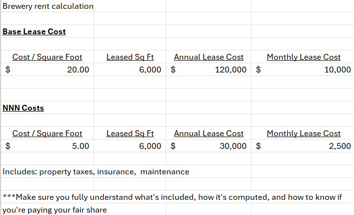 When computing total rent, be sure to include all the costs for your space (see the illustration below).